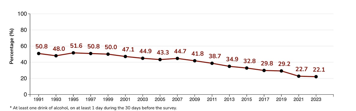 Today’s teenagers drink less, smoke less, get into fights less, and have less sex. By many measurable behavioural metrics, they are more cautious than any cohort that came before.