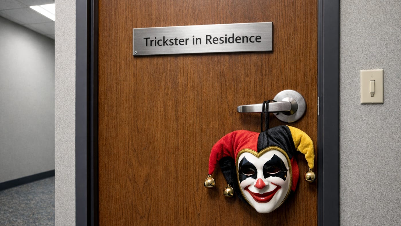 What if the BBC, McKinsey, OpenAI, and the Vatican had Tricksters in Residence? Somebody whose role it was to notice brittle joints, test problematic assumptions, and inject some revealing disruption in the right places at the right time?